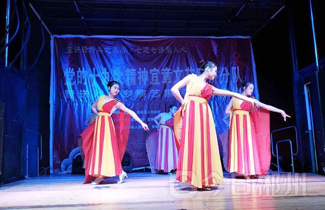 整场演出持续近一个半小时,轻灵曼妙的舞蹈,优美动听的歌声,吸引了百余名村民前来观看。表演融入了党的十九大精神宣讲、乡风文明等内容,以群众喜闻乐见的形式,把党的十九大精神宣传到千家万户,进一步激发了广大群众的自豪感、获得感和使命感,凝聚起新时代、新征程的强大发展动力。(通讯员 王弦 陈涛)