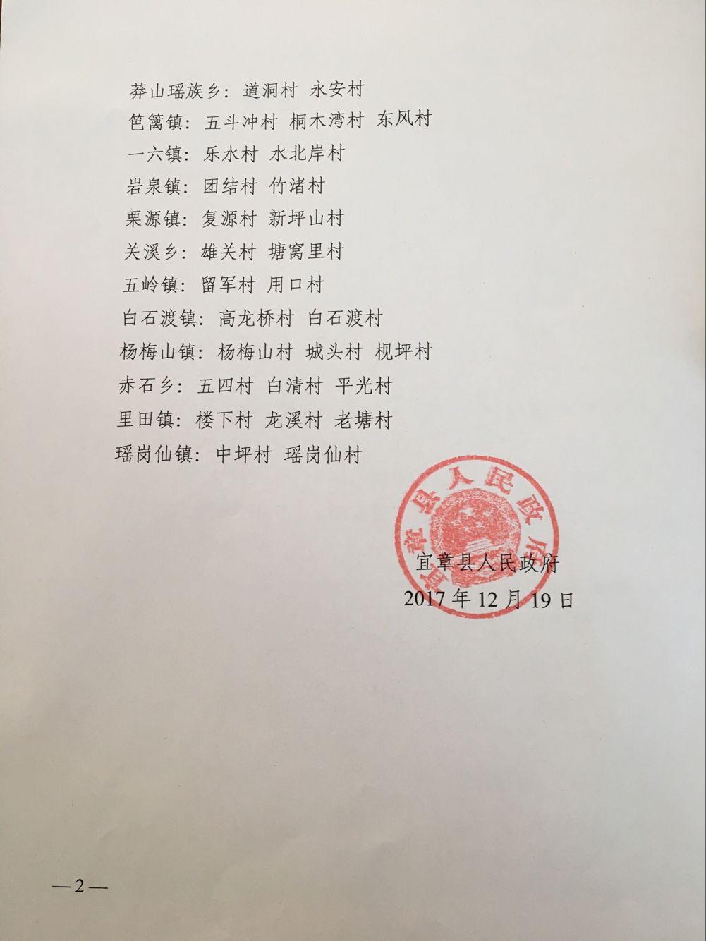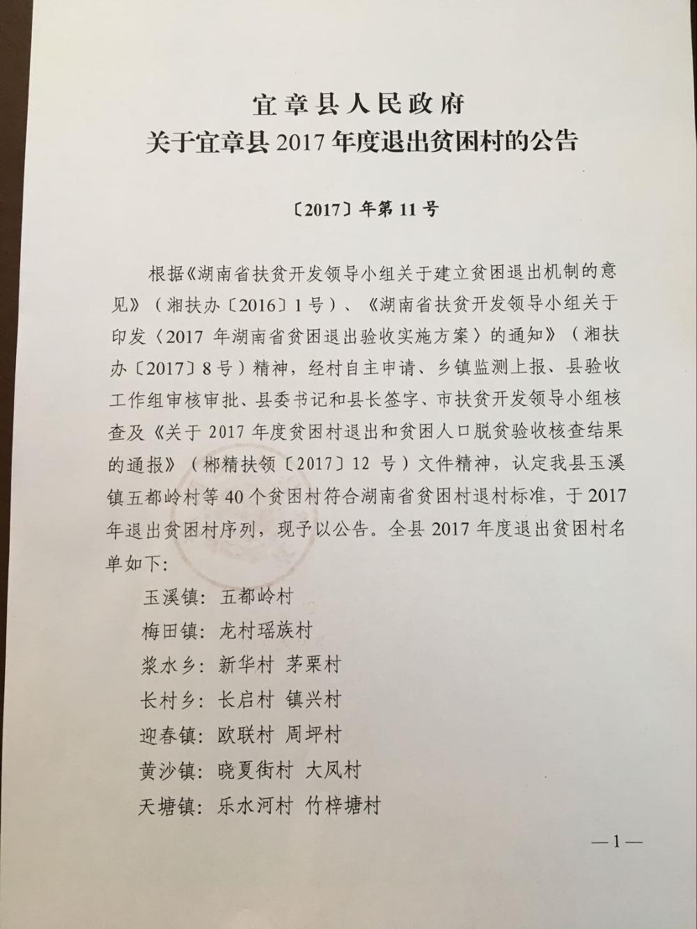 宜章县人民政府关于宜章县2017年度退出贫困村的公告