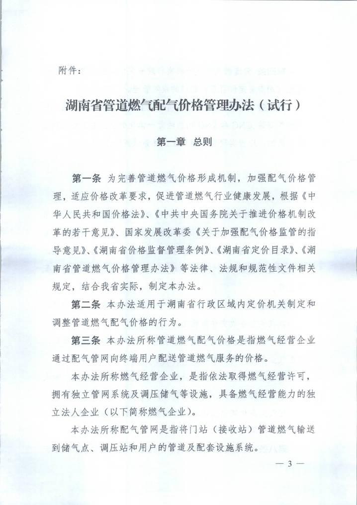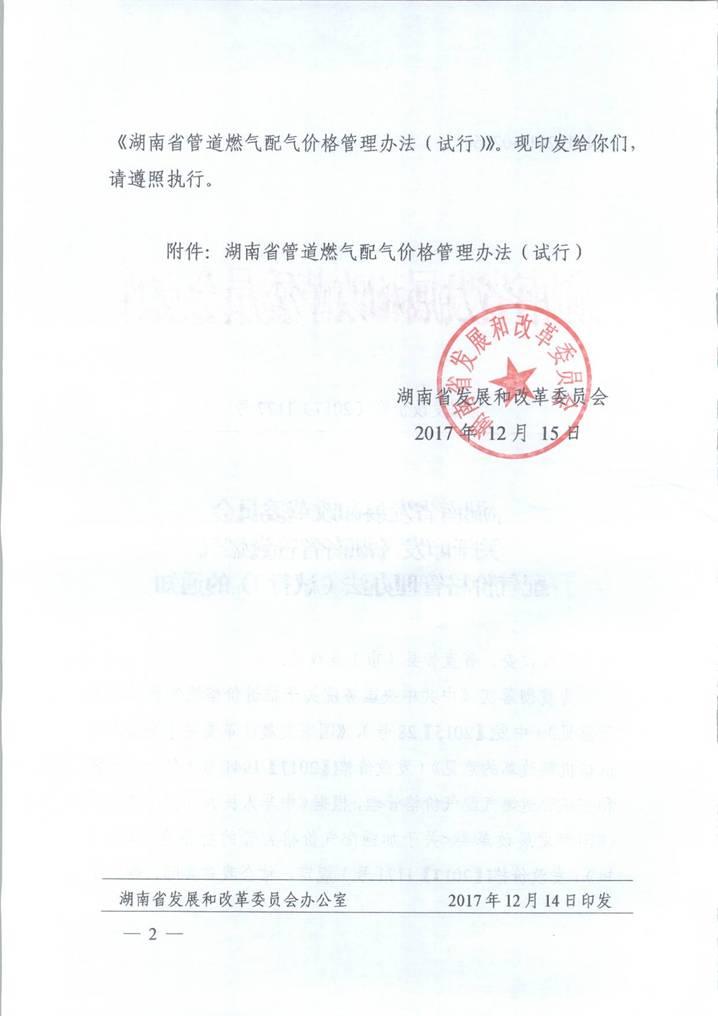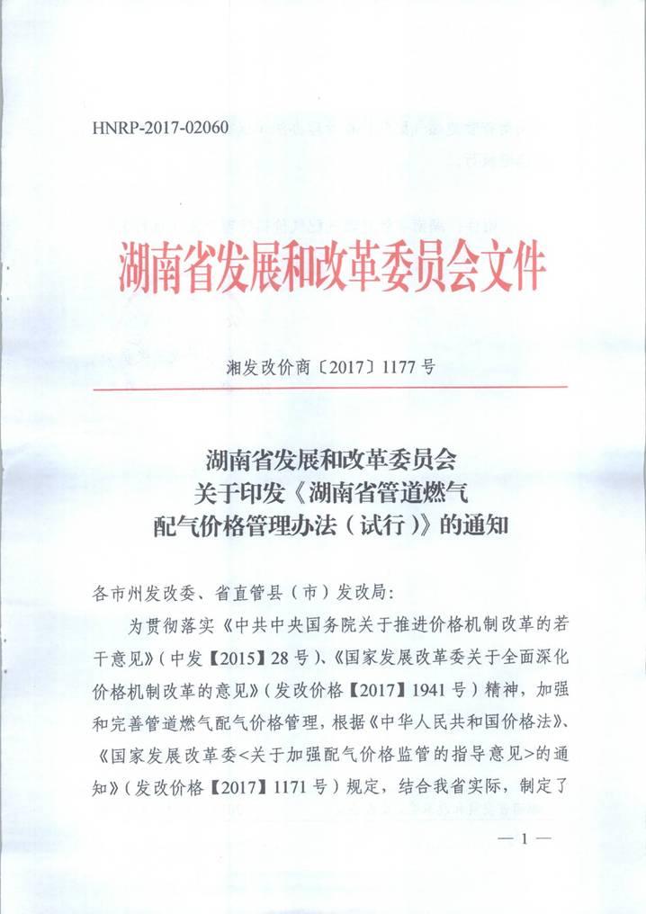 关于印发《湖南省管道燃气配气价格管理办法(试行)》的通知 湘发改价商[2017] 1177号