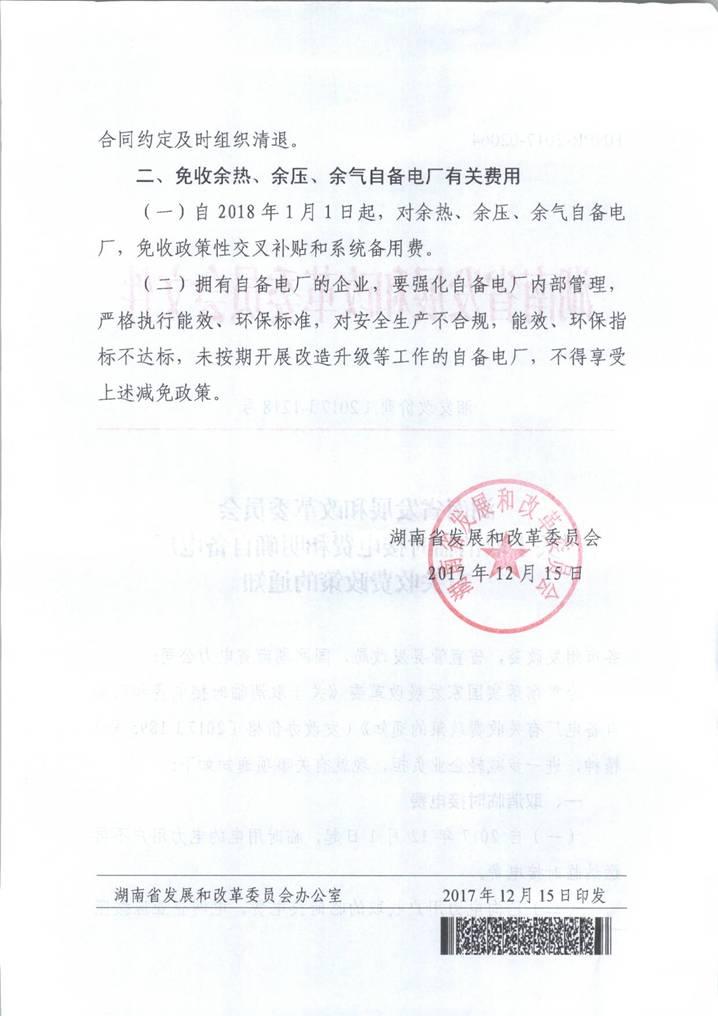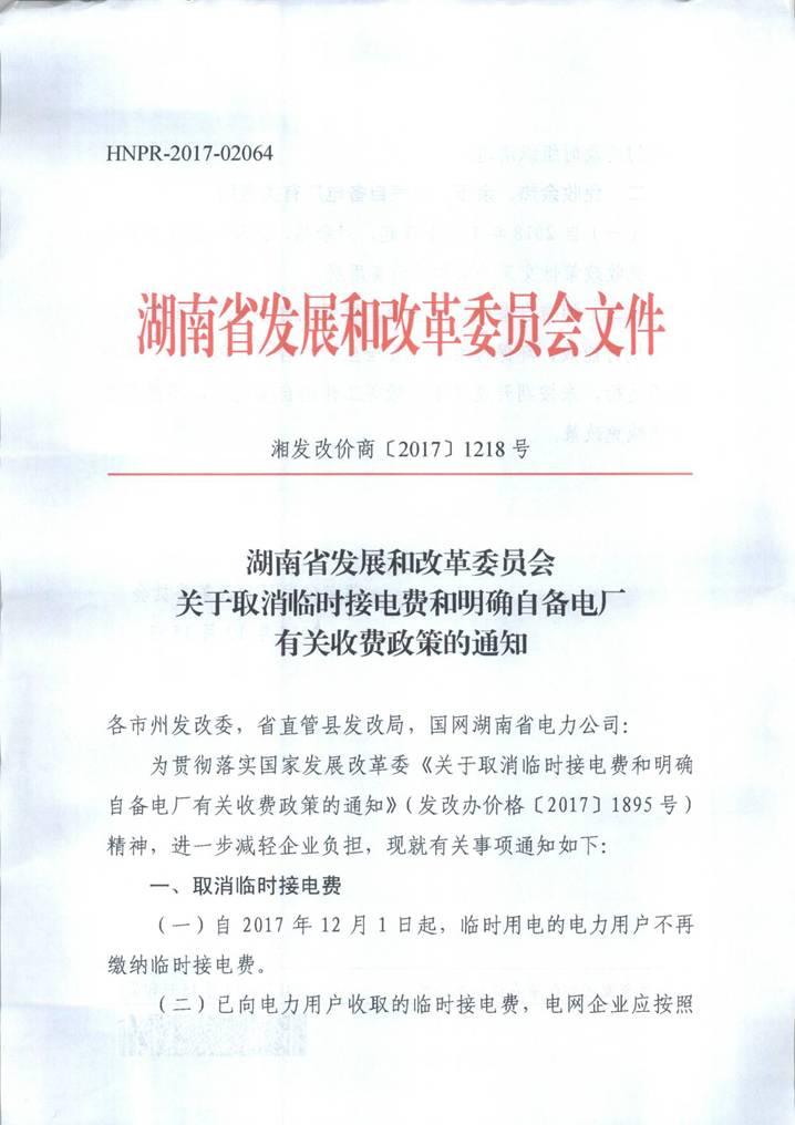 关于取消临时接电费和明确自备电厂有关收费政策的通知 湘发改价商[2017] 1218号