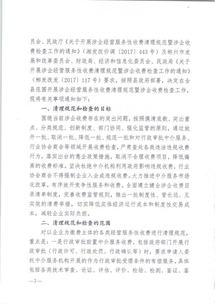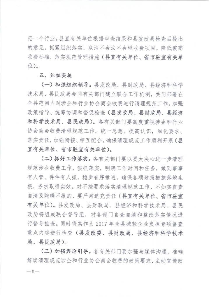 县发改局、县财政局、县经科局、县民政局关于开展涉企经营服务性收费清理规范暨涉企收费检查工作的通知