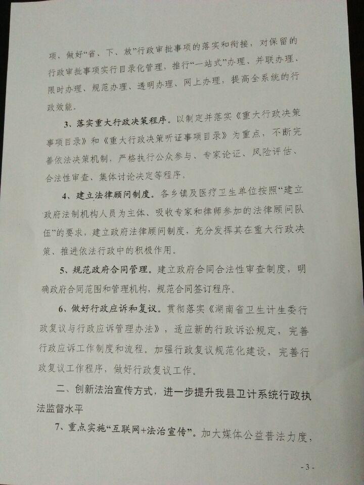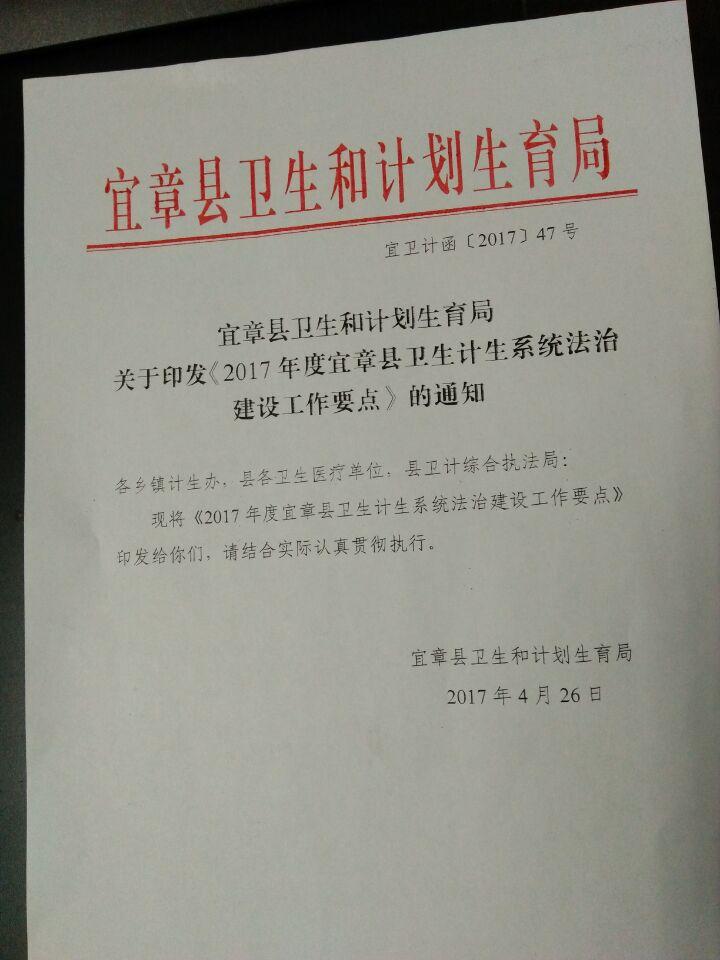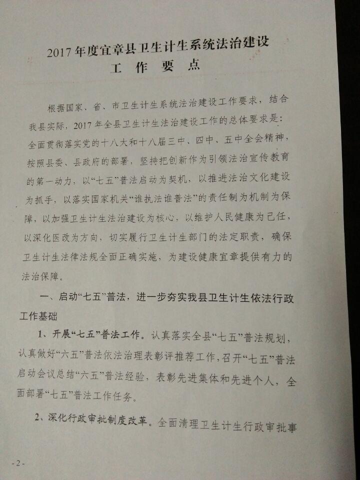 2017年宜章县卫生计生局法制工作要点