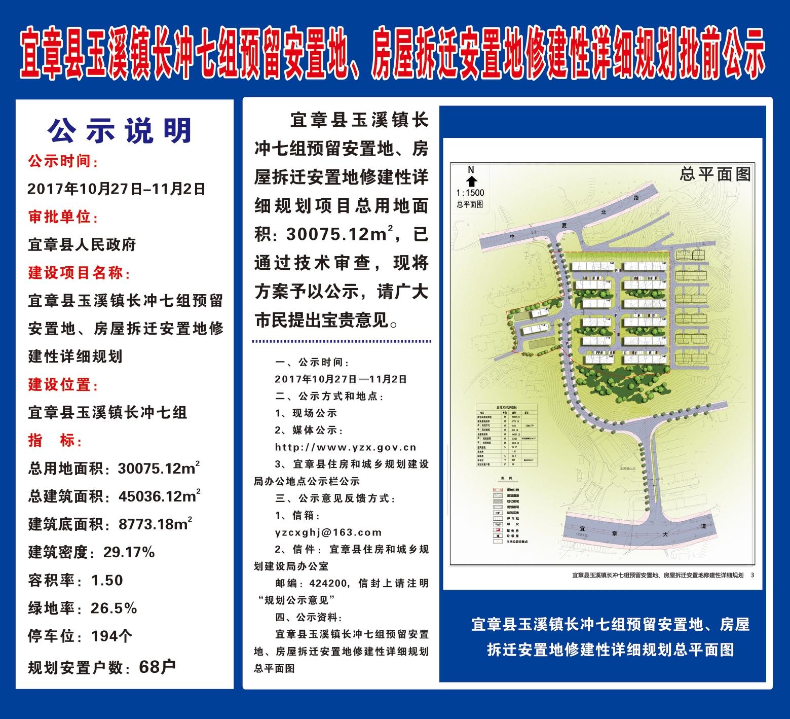 宜章县玉溪镇长冲七组预留安置地、房屋拆迁安置地修建性详细规划批前公示