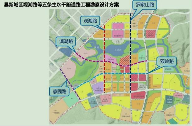 观湖路、罗家山路、滨湖路、双岭路、家园路等五条主次干路作为县新城核心区三纵两横的主次干路,它的建设对加大城市基础设施的建设力度,完善路网功能结构,提升道路两厢地段价值,展示玉溪新城景观风貌的重要窗口,促进玉溪新区又好又快发展有着十分重要的意义。项目全长7.32公里,其中观湖路长1500米,路宽30米;罗家山路长1680米,路宽30米;滨湖路长1620米,路宽30米;双岭路长1690米,路宽30米;家园路长830米,路宽40米。设计方案已基本完成,并于2017年11月30日县规委会第八次主任会议审议通过,按照审批程序要求,为提高规划的科学性和民主性,现将方案予以公示,请广大市民提出宝贵意见。