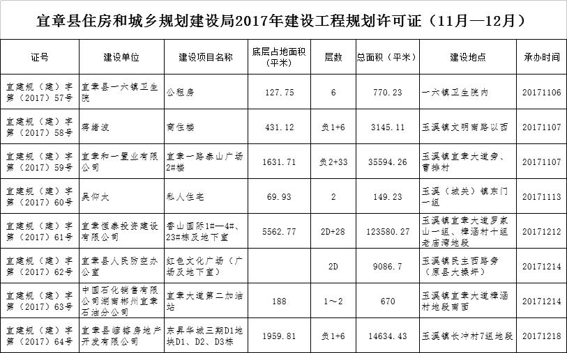 宜章县住房和城乡规划建设局2017年建设工程规划许可证(11月—12月)