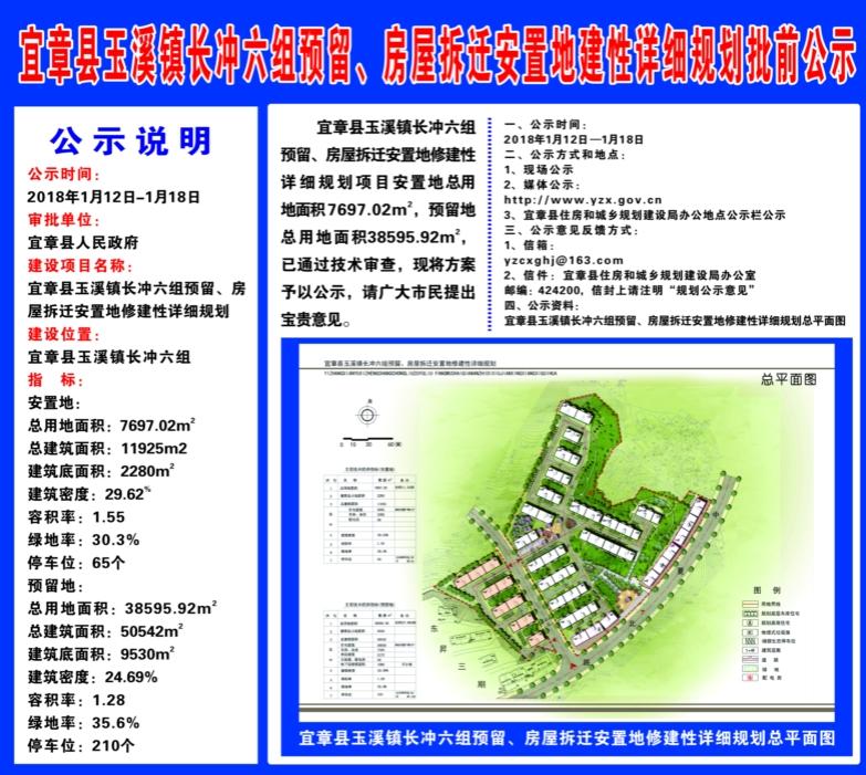 宜章县玉溪镇长冲六组预留、房屋拆迁安置地建性详细规划批前公示