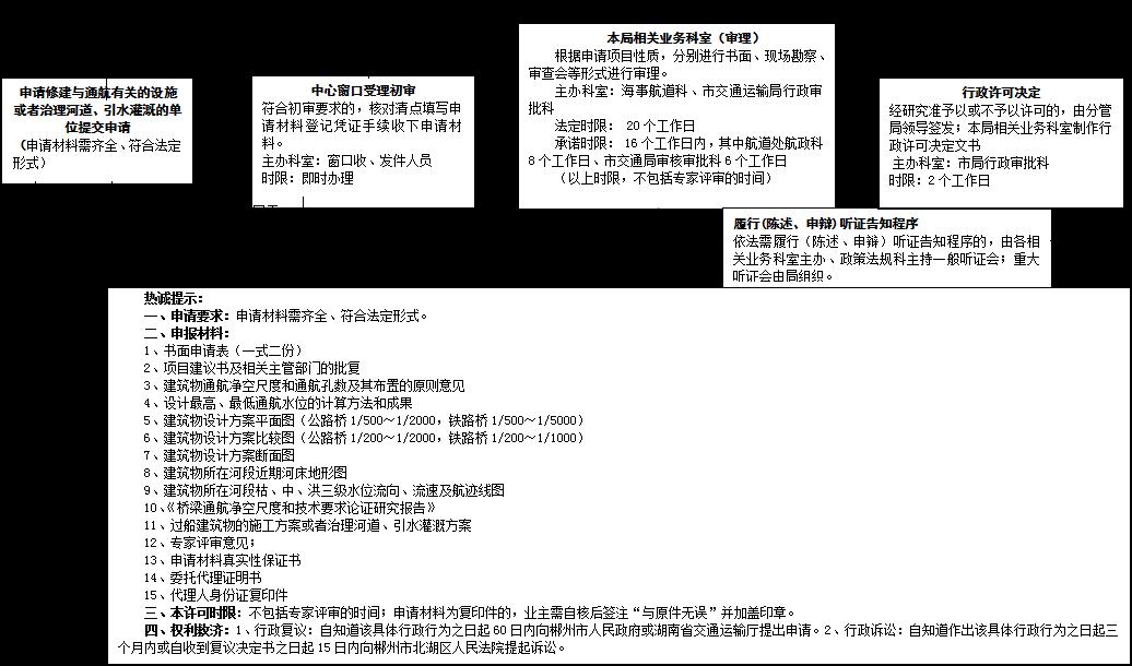 修建与通航有关的设施或者治理河道、引水灌溉许可 |