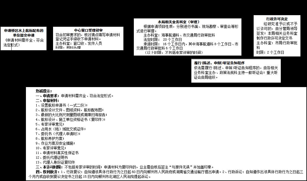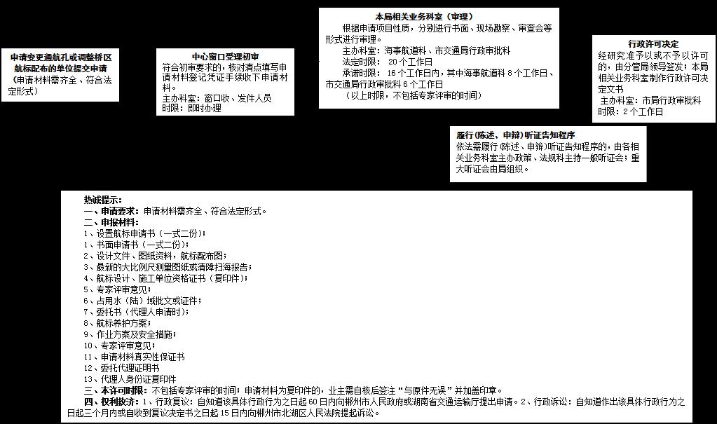 1、《中华人民共和国航道管理条例》第十五条第三款 ;2、《中华人民共和国航道管理条例实施细则》 |
