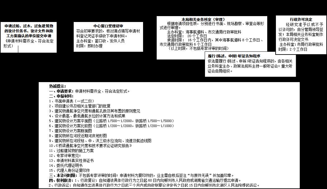 过船、过木、过鱼建筑物设计任务书、设计文件和施工方案许可 |