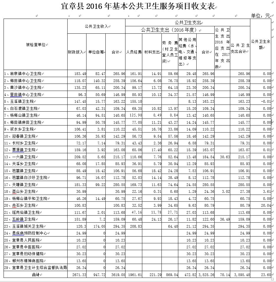 宜章县财政局、卫生和计划生育局《关于拨付2016年基本公共卫生服务项目的补助资金通知》
