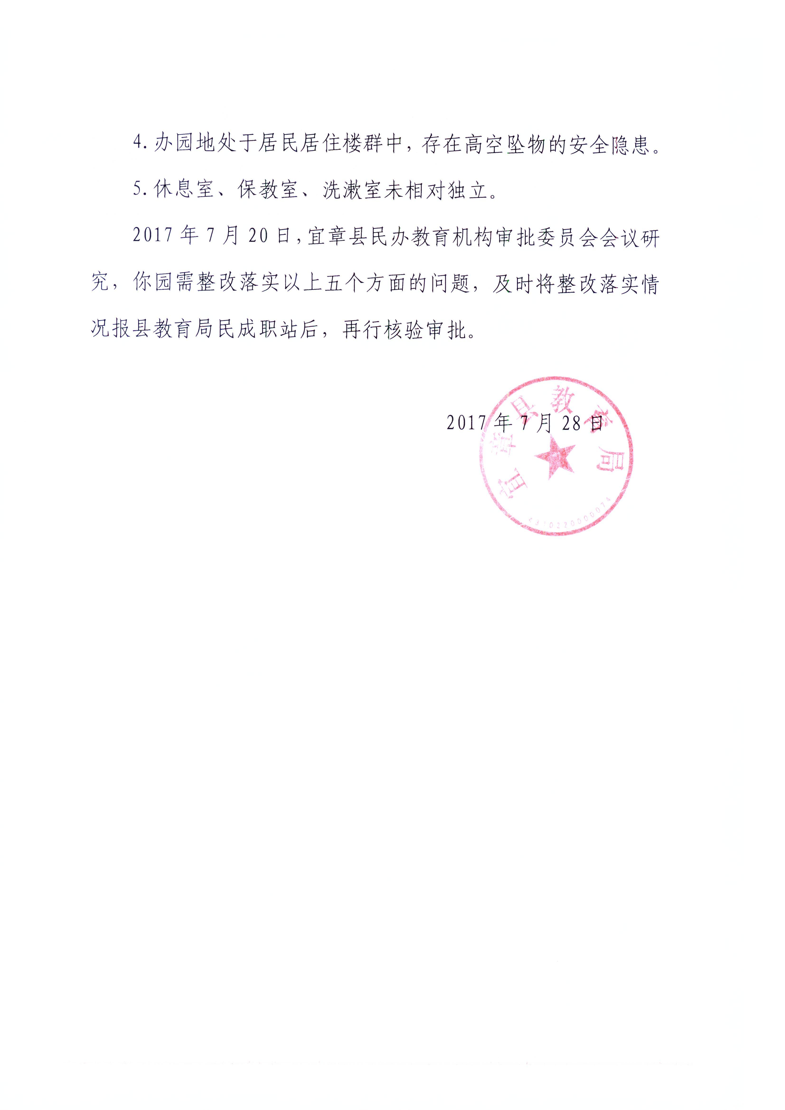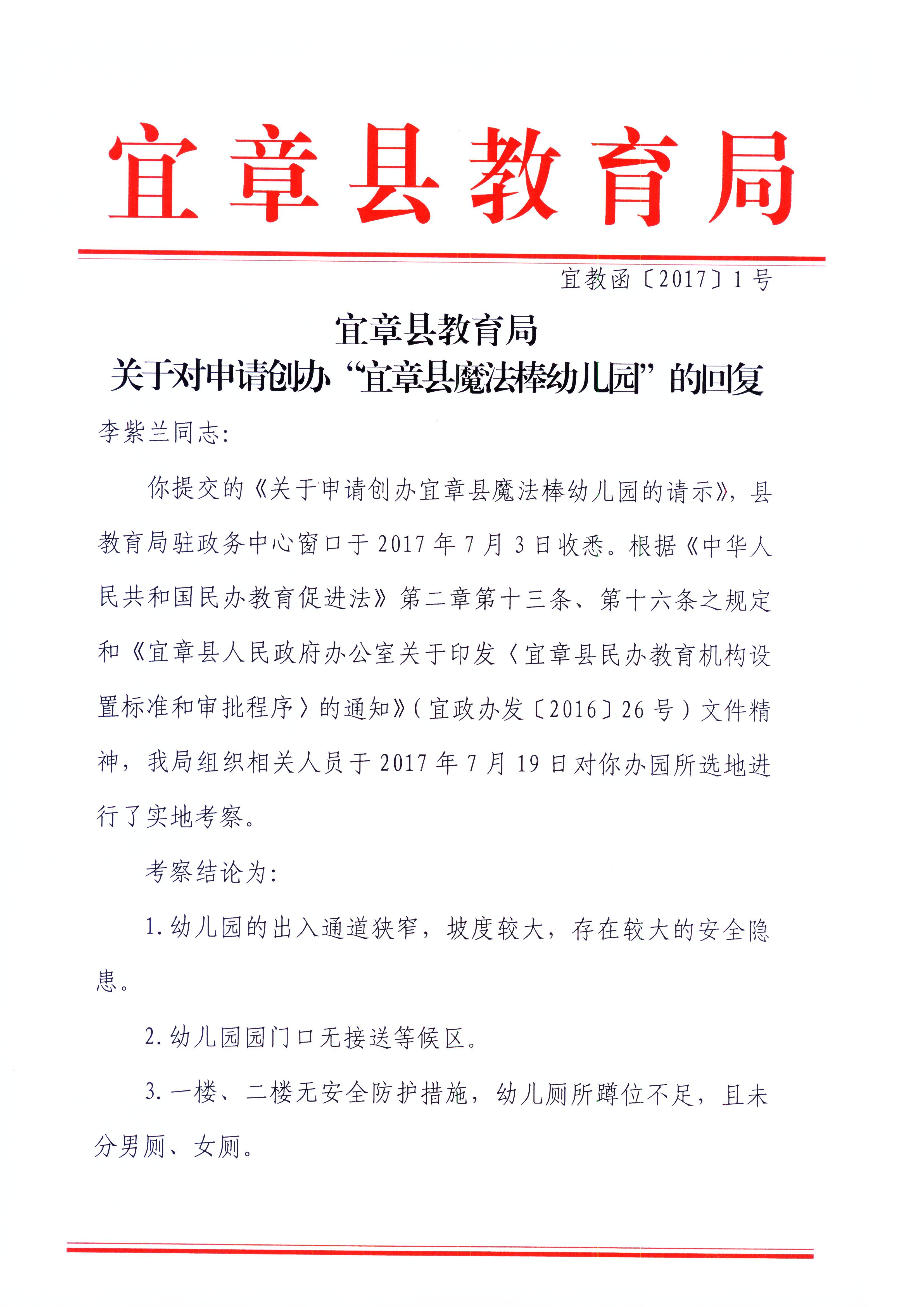 关于对申请创办“宜章县魔法棒幼儿园”的回复