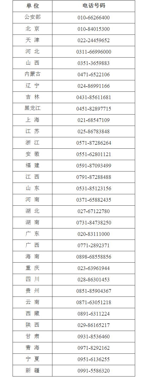 十二、公安部及31个省级公安机关出入境管理部门服务监督电话(周一至周五9:00至17:00)