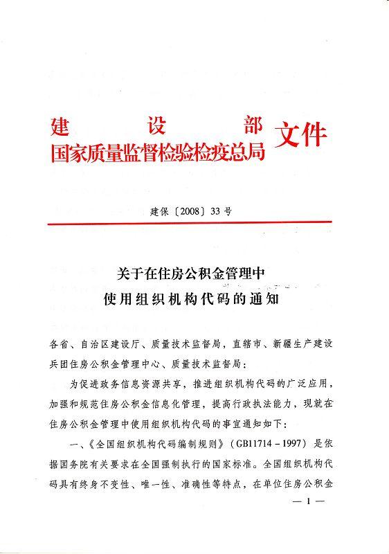 关于在住房公积金管理中使用组织机构代码的通知