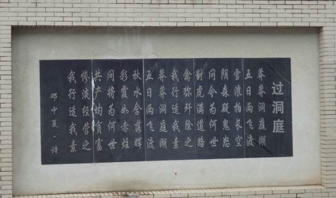 广场四周被树木所环绕,台阶两边栽满了松柏,左边有伟大领袖毛泽东的亲笔题词:“继启邓中夏之遗志。”,右边有邓中夏烈士的一首诗《过洞庭》: