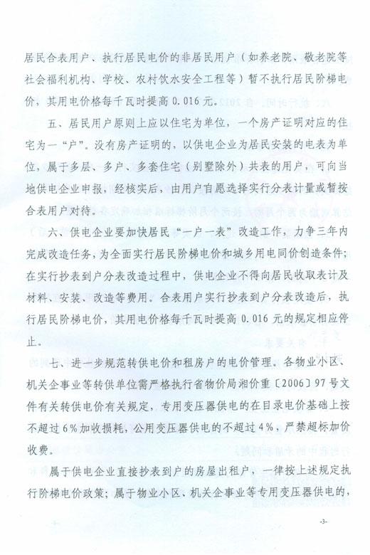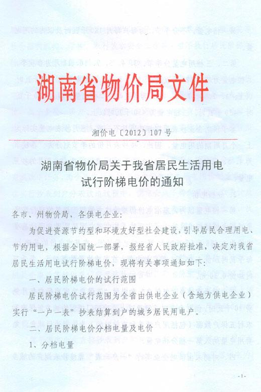 湖南省物价局关于我省居民生活用电试行阶梯电价的通知
